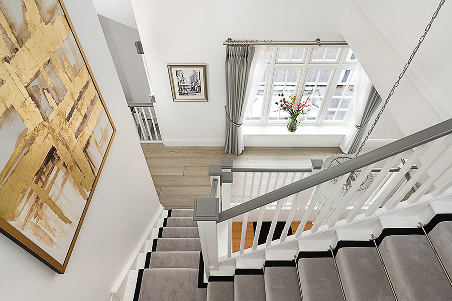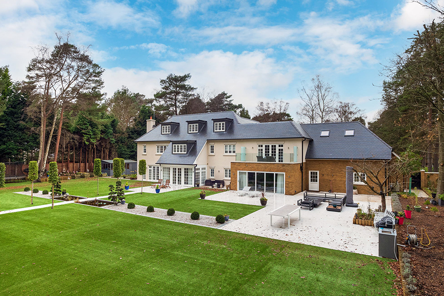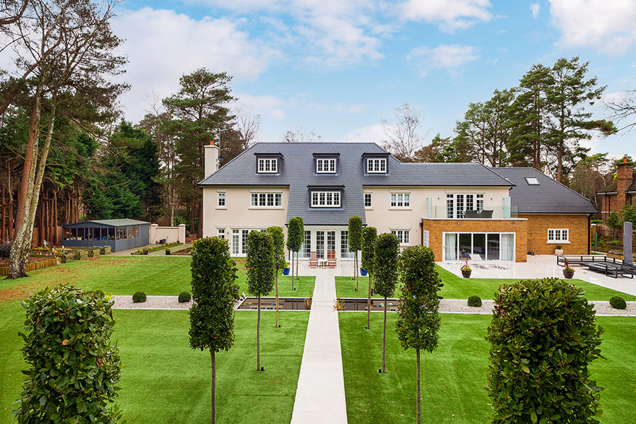 Works included the demolition of the old kitchen and garage, removing the roof, and adding a new upper floor to significantly increase the property’s scale. Extensions to the left-hand side created a spacious new garage, plant room, kitchen, and family room. The interior was fully refurbished with new M&E installations, bathrooms, and a bespoke kitchen, transforming the home into a modern, functional residence.