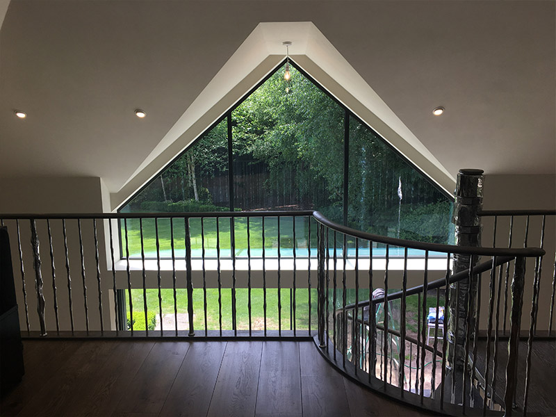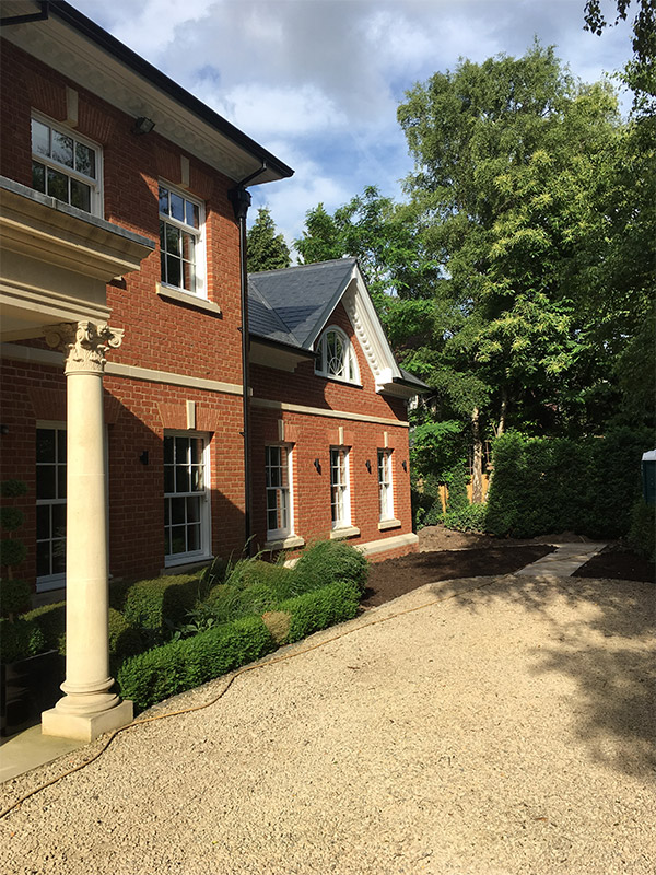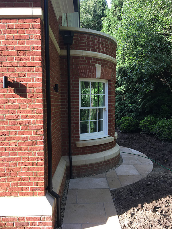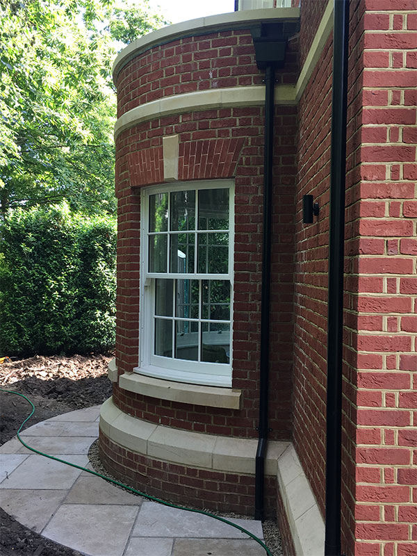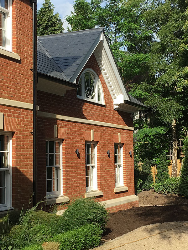We matched the face bricks and bath stone details, box sash timber windows, and slate roof exterior with the rest of the house.